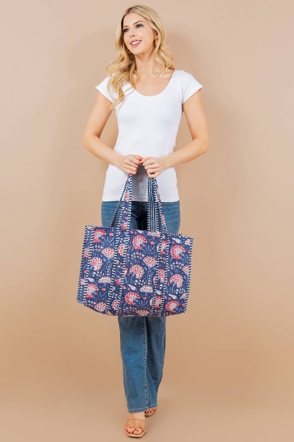 Printed Pink Floral Quilted Tote Bag