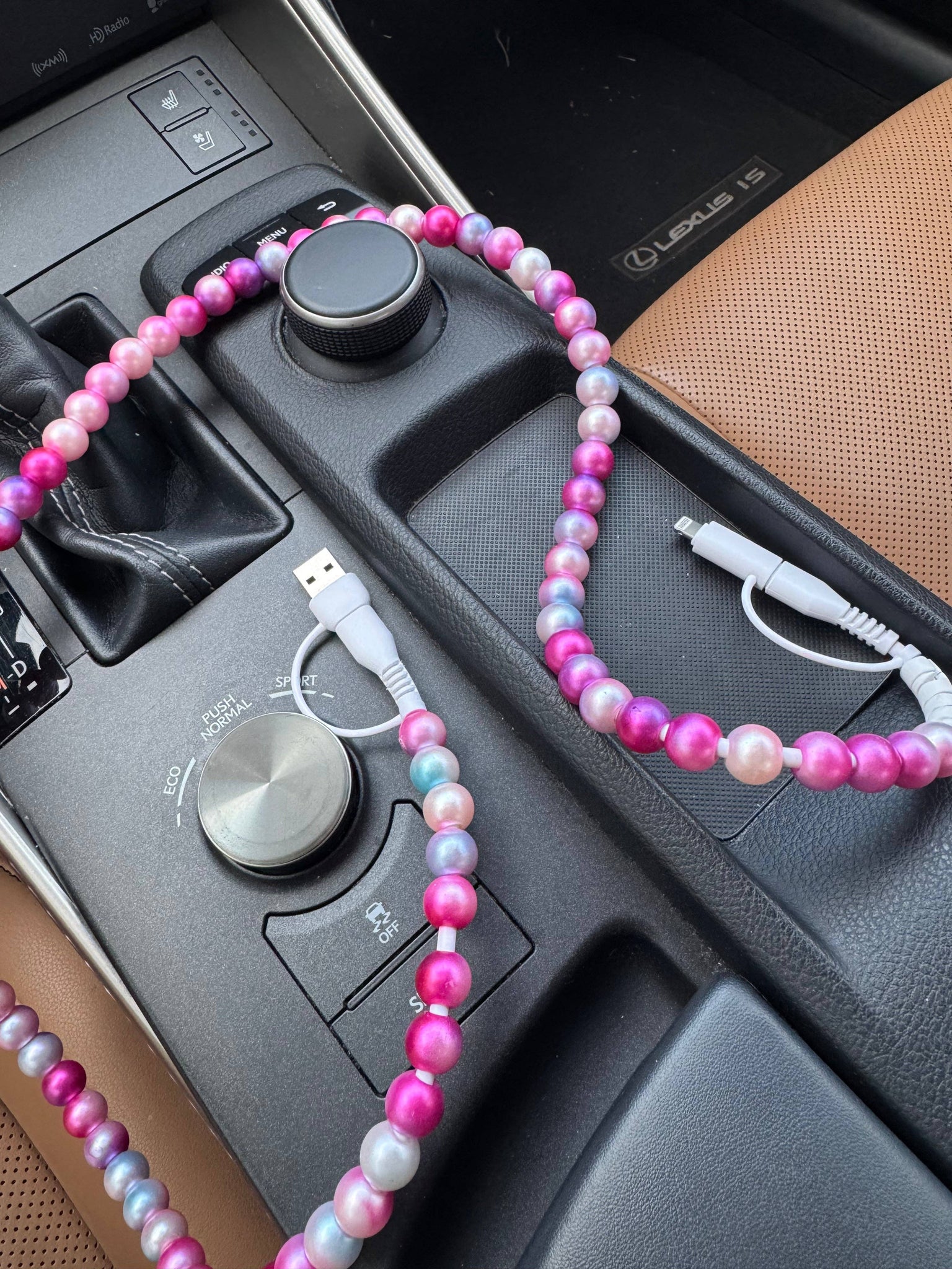 Designed with a beautiful pink tie dye-beaded cord, it effortlessly blends tech with chic accessories.