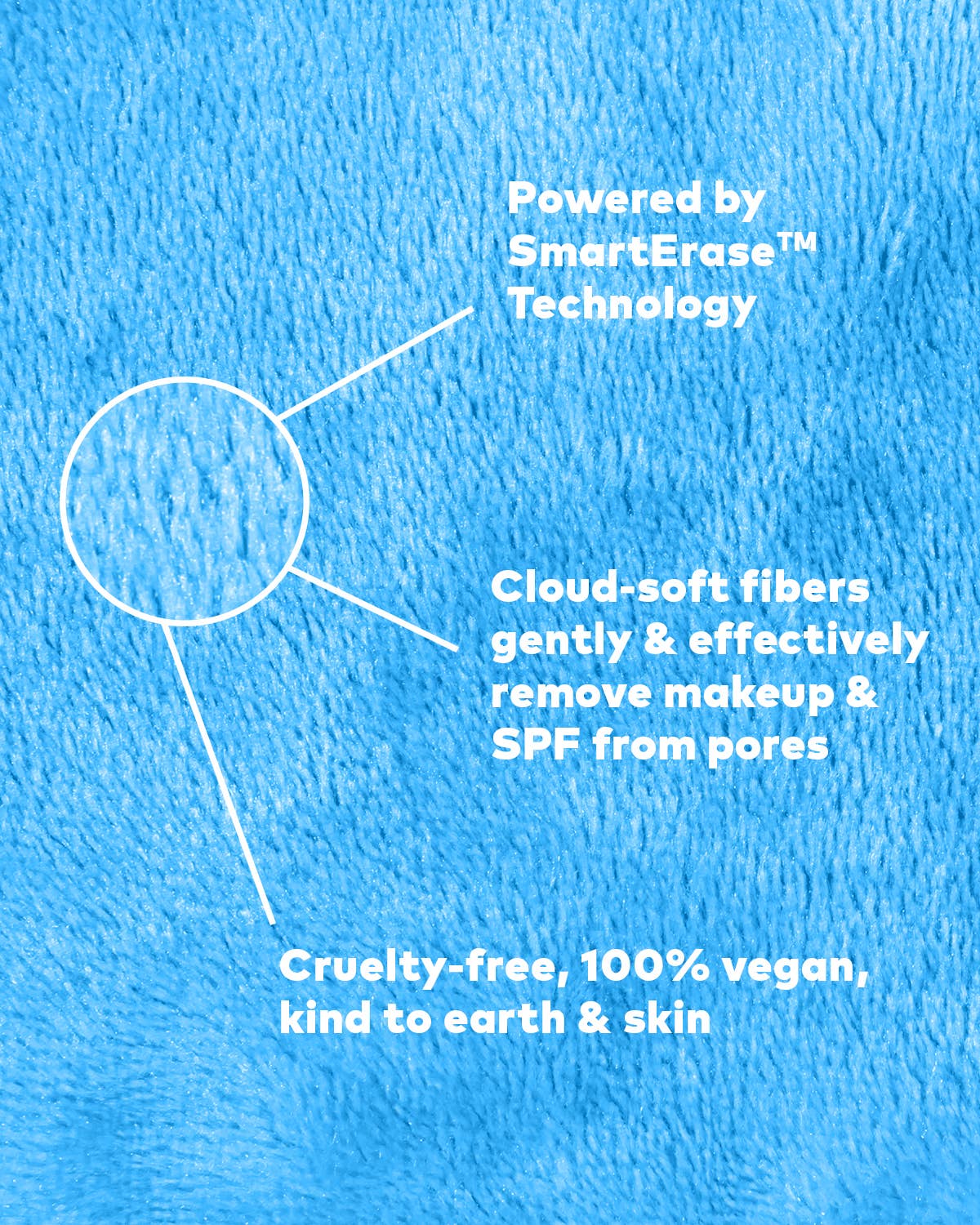 Includes 1 PRO MakeUp Eraser, 15.5in x 7.25in. Removing makeup has never been so simple. This eco-friendly makeup remover we all wished for is changing the way the world removes makeup. This beauty routine will simplify your skincare routine & change your life. Erase all makeup with JUST WATER™ including waterproof. Our patented, water-activated, cloud-soft fibers gently & easily remove all makeup & sunscreen from pores. 2 in 1 benefit: one side erases makeup & one side exfoliates skin. ✓ Dermatologist Recommended for sensitive skin ✓ SmartErase™ Technology ✓ Reusable & machine washable ✓ ALCOHOL & FRAGRANCE FREE ✓ Great for heavy makeup The Original MakeUp Eraser® is non-irritating and non-drying, making it perfect for sensitive skin. It's non-comedogenic, safe for lash extensions, & entirely oil-free for a fresh, comfortable skincare experience. Wet with warm water. Use gentle circular motions to erase makeup with the short fibe