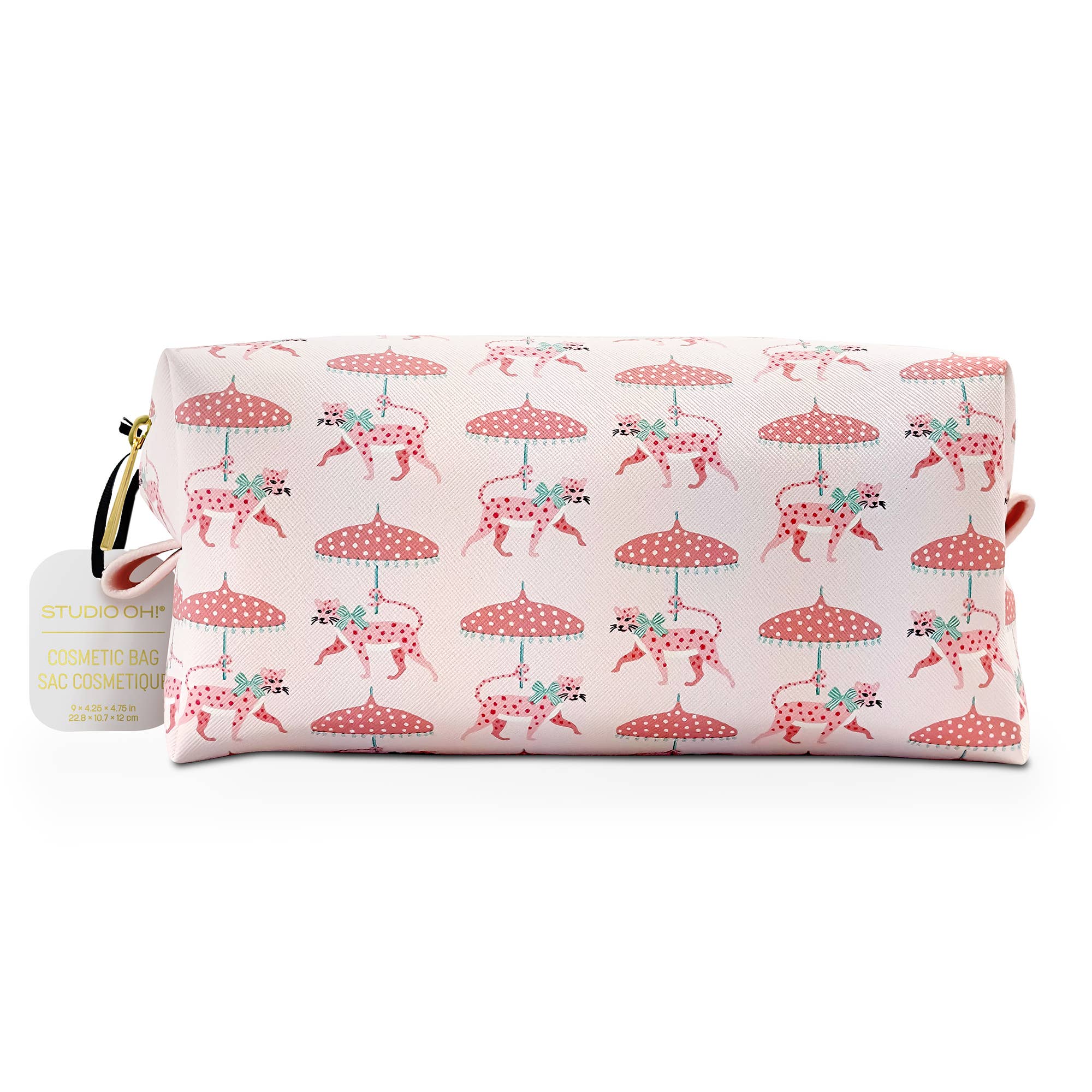For those times when you need everything in one place, the loaf cosmetic bag from Studio Oh! is perfectly sized for packing up your must-have makeup and accessories for home or travel. Designed for function and beauty, this loaf-shaped bag is made of water-resistant vegan-leather material, fully lined, and adorned with full-color art and a metal zipper. Stay true to style while keeping your cosmetics safe and secure.