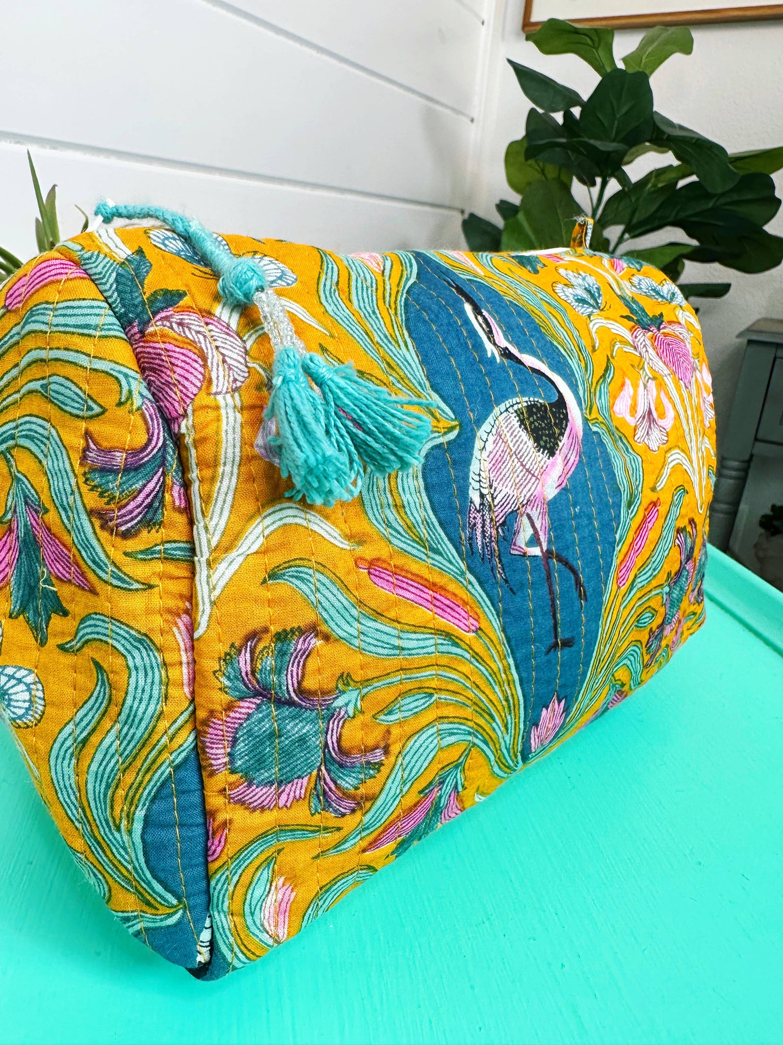 With hand printed fabrics, there may be some variations and print placement may vary by bag. Handmade in small batches, prints are very limited.