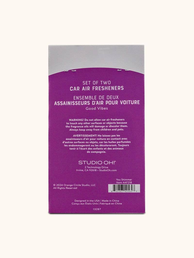 Make your drive time more pleasant with colorful car air fresheners from Studio Oh! These fragrance-infused designs are made with special DeoBoost® technology to help eliminate malodors and create longer-lasting freshness. With two car air fresheners per package, you can mix and match designs between cars or keep a spare tucked in your glove box.