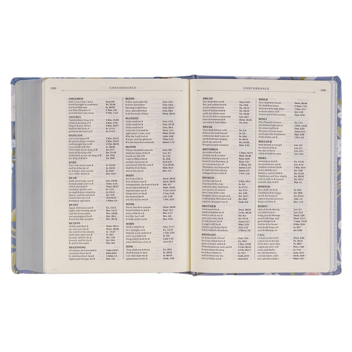 The Blue Floral Hardcover Flora Collection Faux Leather King James Version Note-taking Bible provides space to jot down key points and reflections from sermons or Bible studies to revisit and reflect on layer. Although it has lined space for these annotations, the beautiful, colorful cover design invites you to add color and images to the text or your notes to highlight or accent important ideas you wish to remember.