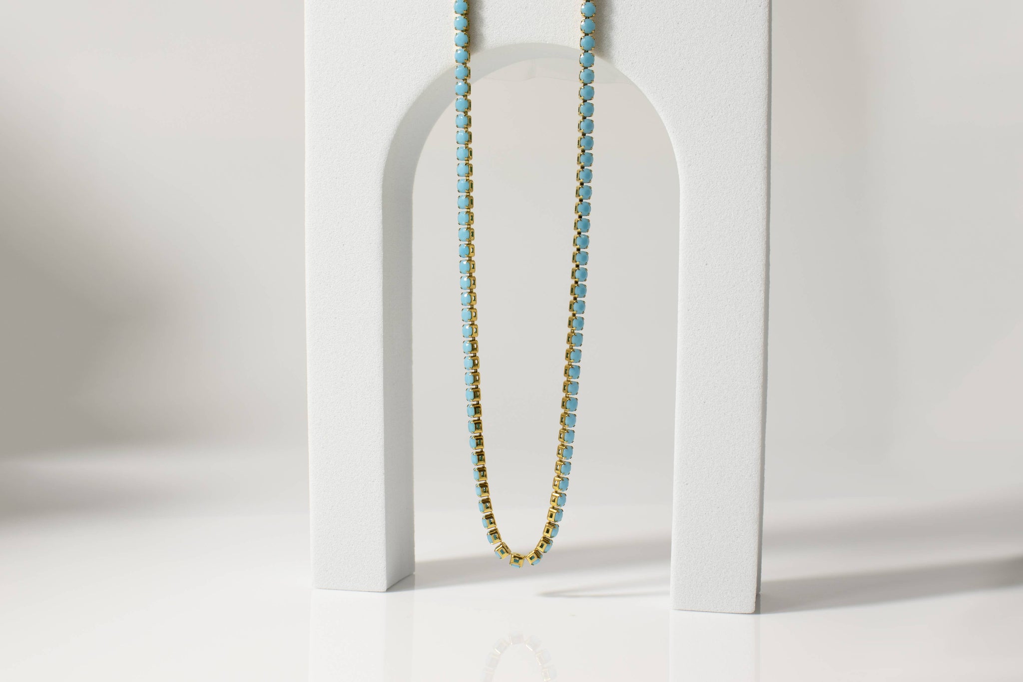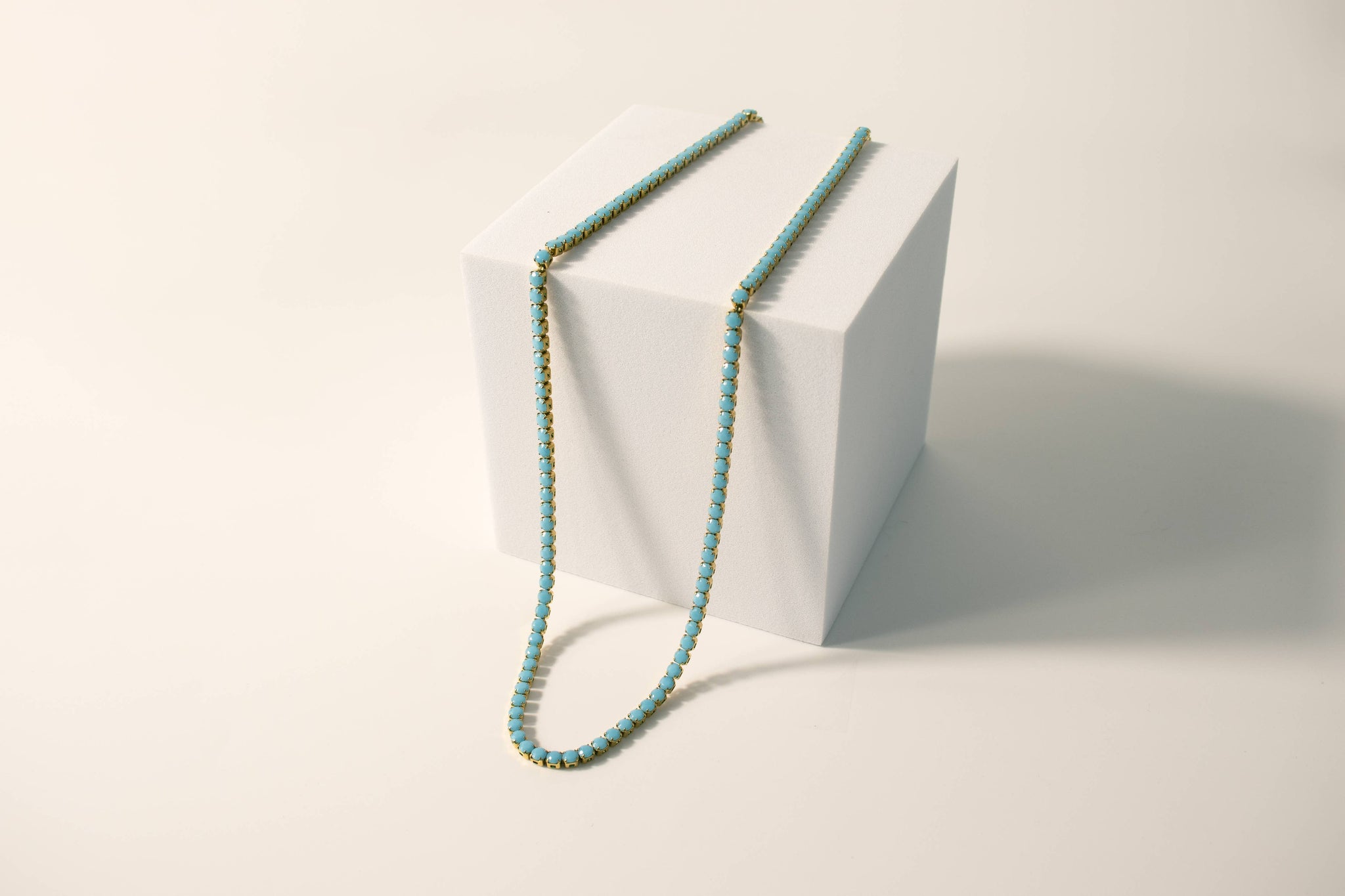 18k Gold Turquoise Rhinestone Tennis Chain Necklace