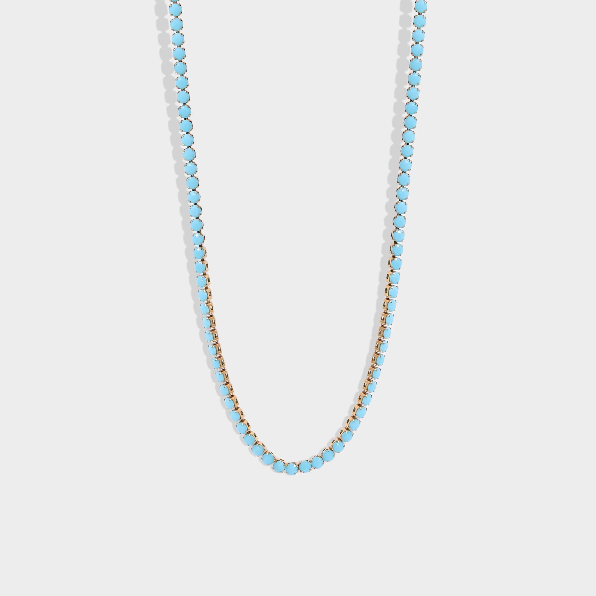 • Turquoise Rhinestone Tennis Chain Necklace with vibrant, eye-catching color
