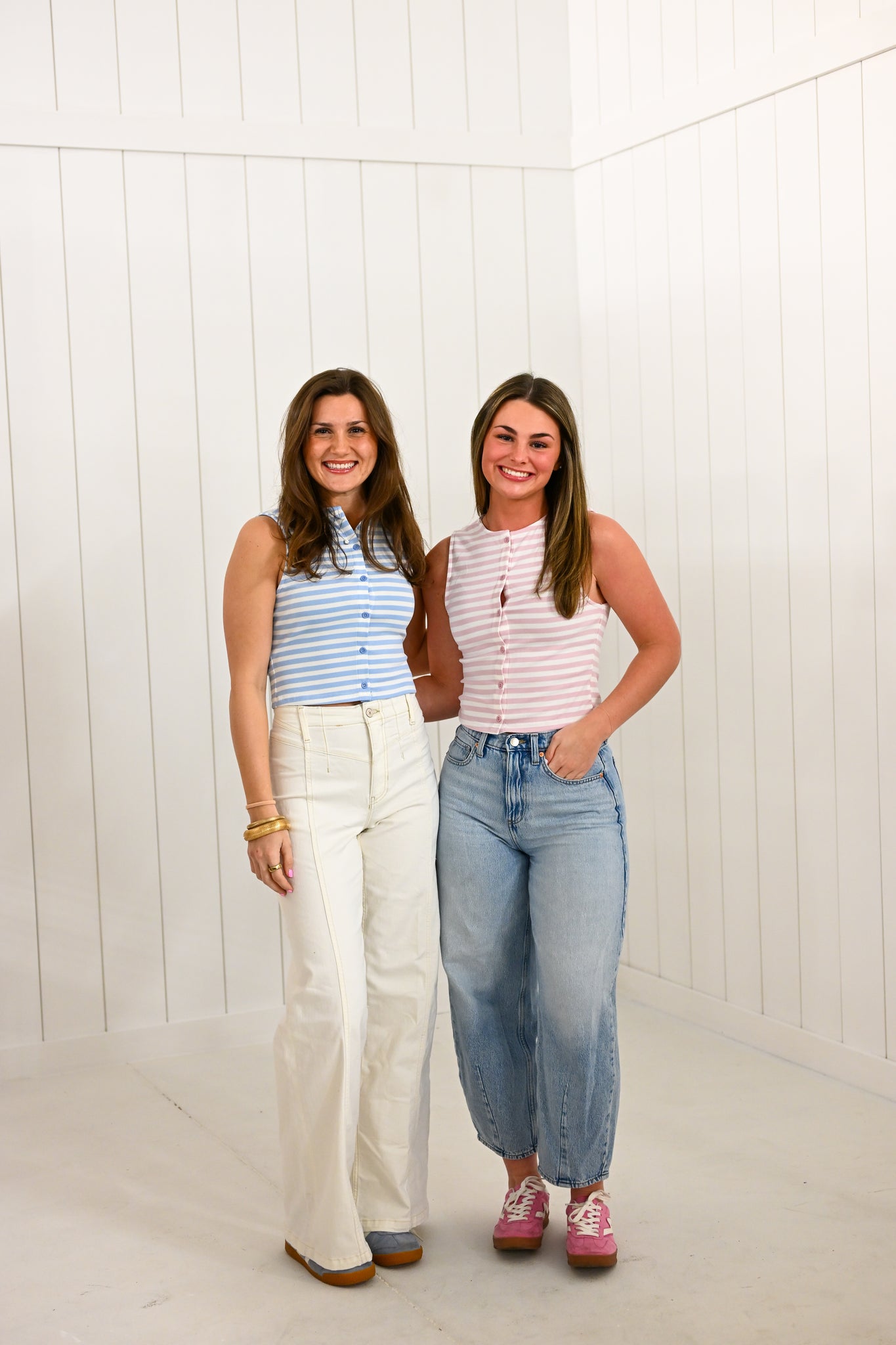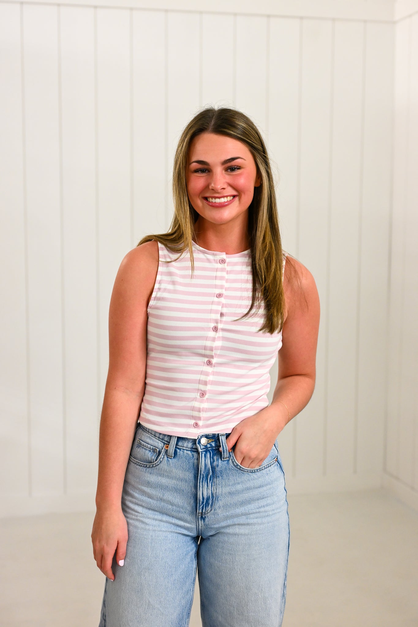 Pink Sleeveless High Neck Stripe Top