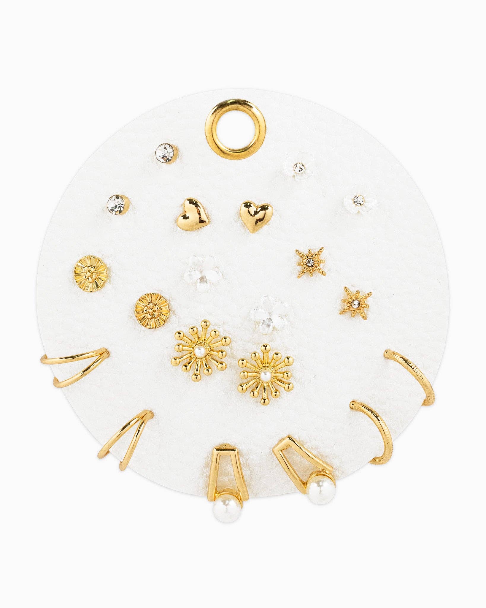 Acrylic Pearl, Flower, Gold Hoop Earring Set of 10
