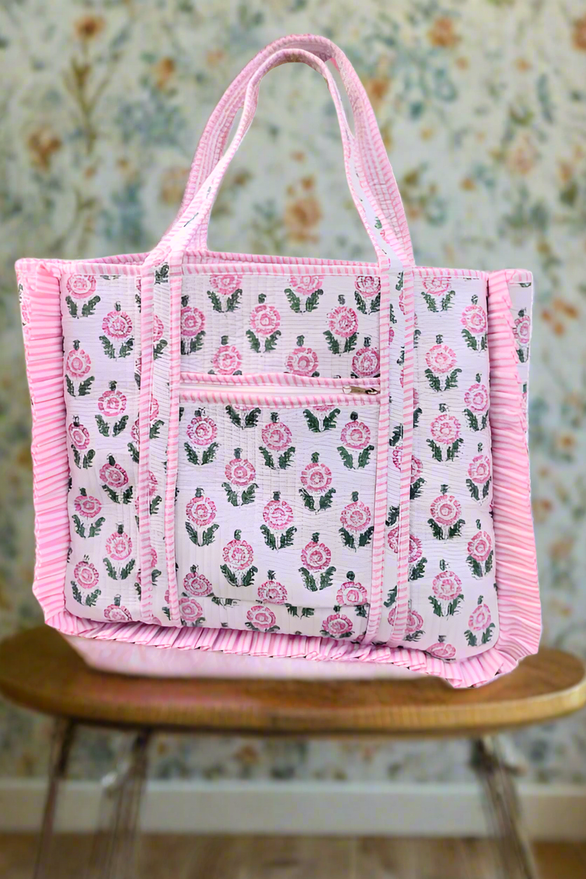 TIred of juggling your essentials in bags that don't match your style or meet your needs? Our Avery pink floral tote is designed to solve both fashion and function! With its vibrant floral print and spacious interior, it's the perfect everyday companion. 16" x 14" x 4"