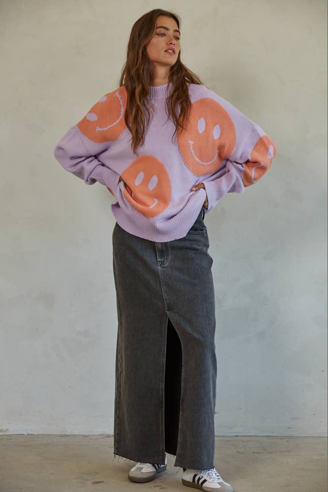 FAST FORWARD SKIRT Woven Denim Washed Cut Off Midi Skirt With Center Front Slit