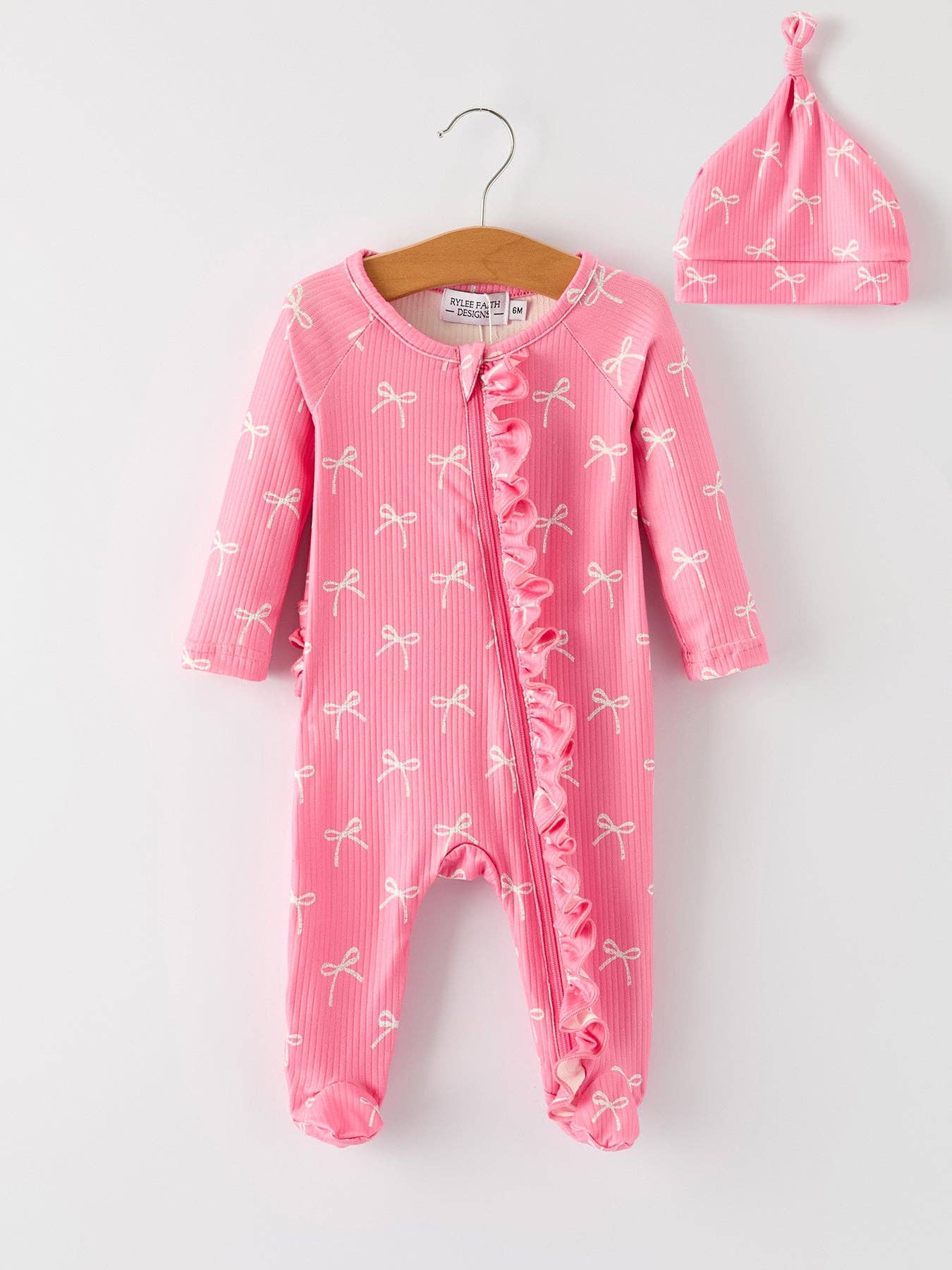 Christmas Bow Pink Romper with Hat: Sweet and Stylish Baby Outfit