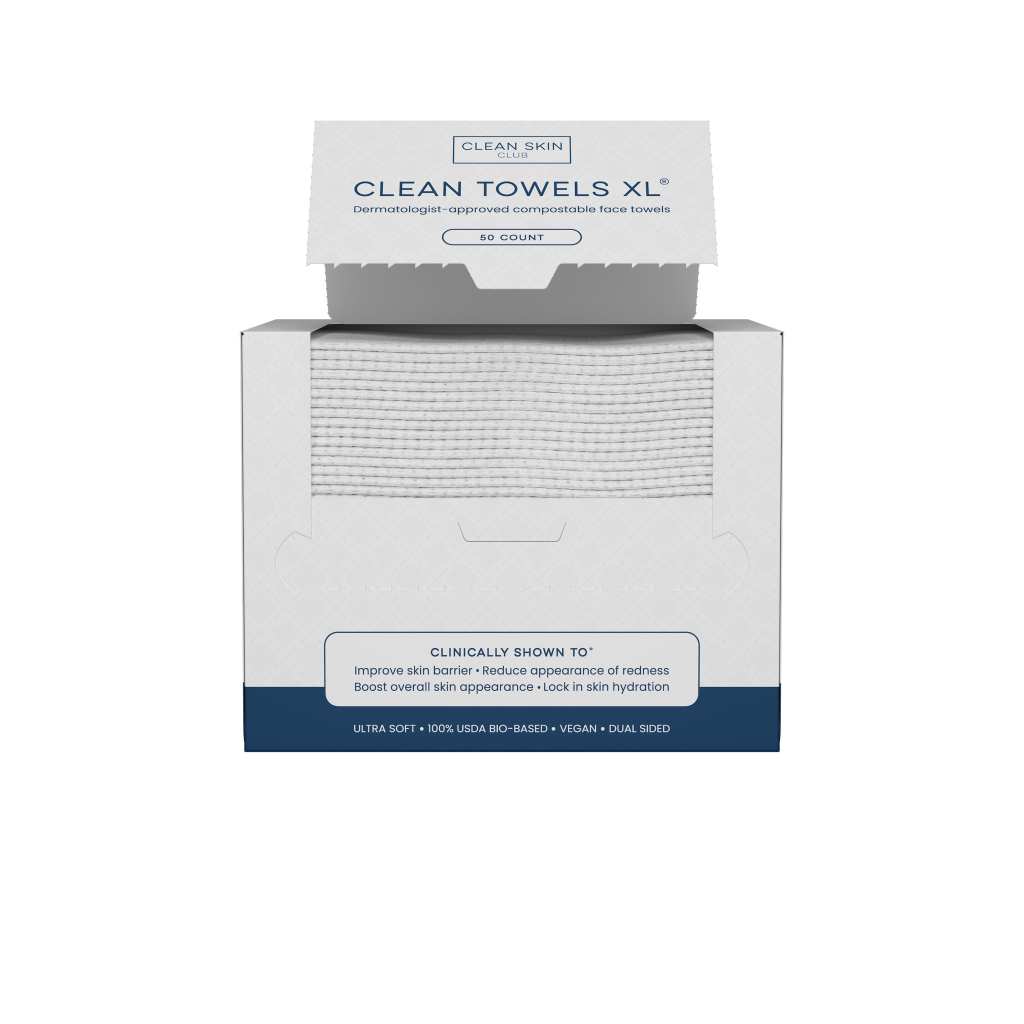 The face towel that improves your skin. Dermatologist-approved and clinically shown to boost overall skin health* Clean Towels™ are the first single use and 100% USDA bio-based face towel. They were created to complete every skincare routine in the cleanest way possible, ensuring the skin is perfectly clean and untouched by bacteria and germs that can harbor on regular washroom towels. The Clean Towels™ are famed for their durability, ultra soft texture, and leaving you feeling fresh, clean, and confident in your skincare. Interchangeable and versatile; they can be used in a multitude of different ways- wet or dry. Beyond drying your face, you can use them to remove makeup, to cleanse with, and much more. Why should I use Clean Towels? * Dermatologist tested and approved * 83.84% had a reduction in the appearance of skin redness * Always have a clean face towel for drying your face * Clinically shown to help individuals achieve visibly clearer skin and less irritation * Helps visibly reduce rednes
