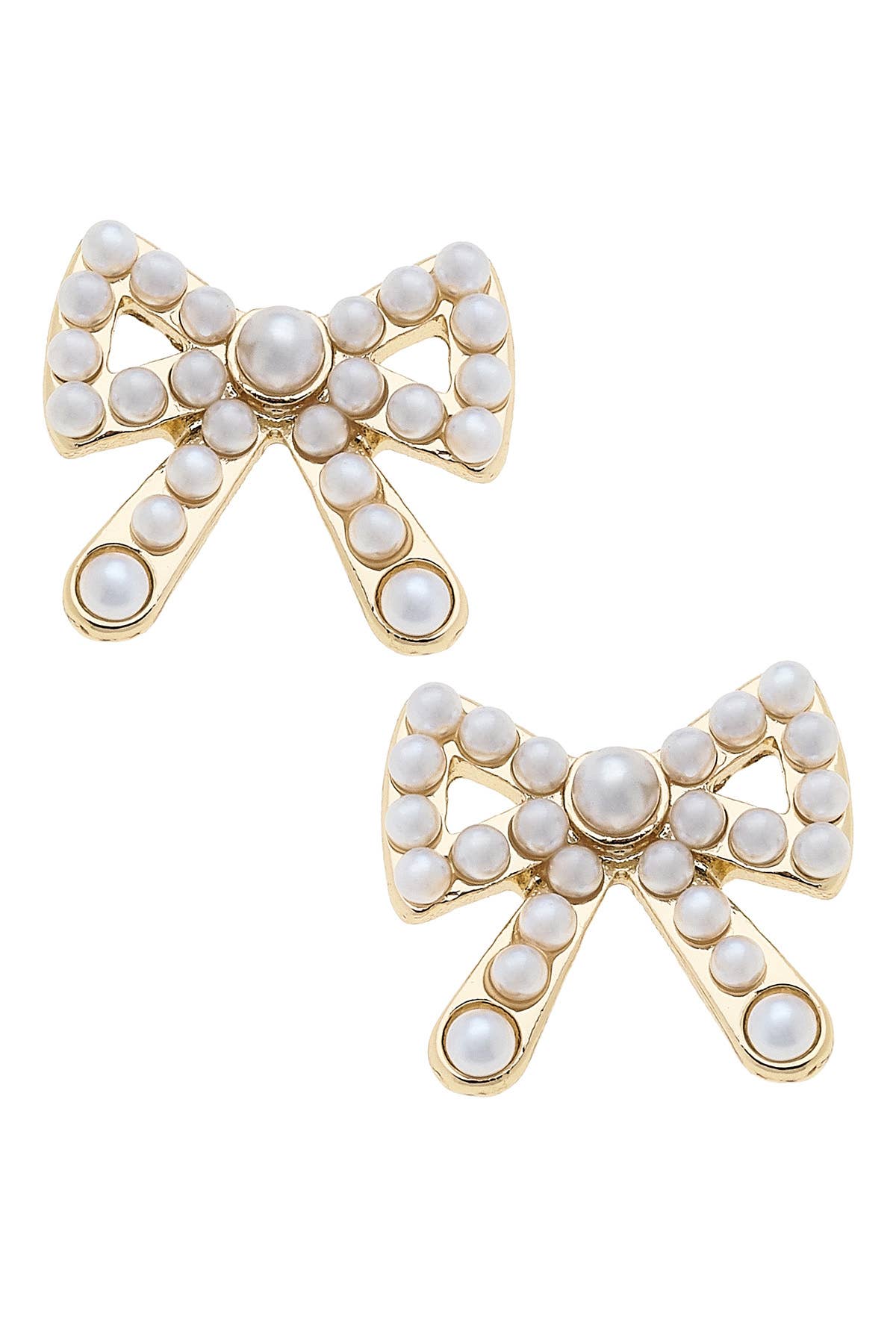 Dawn Pearl Studded Bow Stud Earrings in Ivory