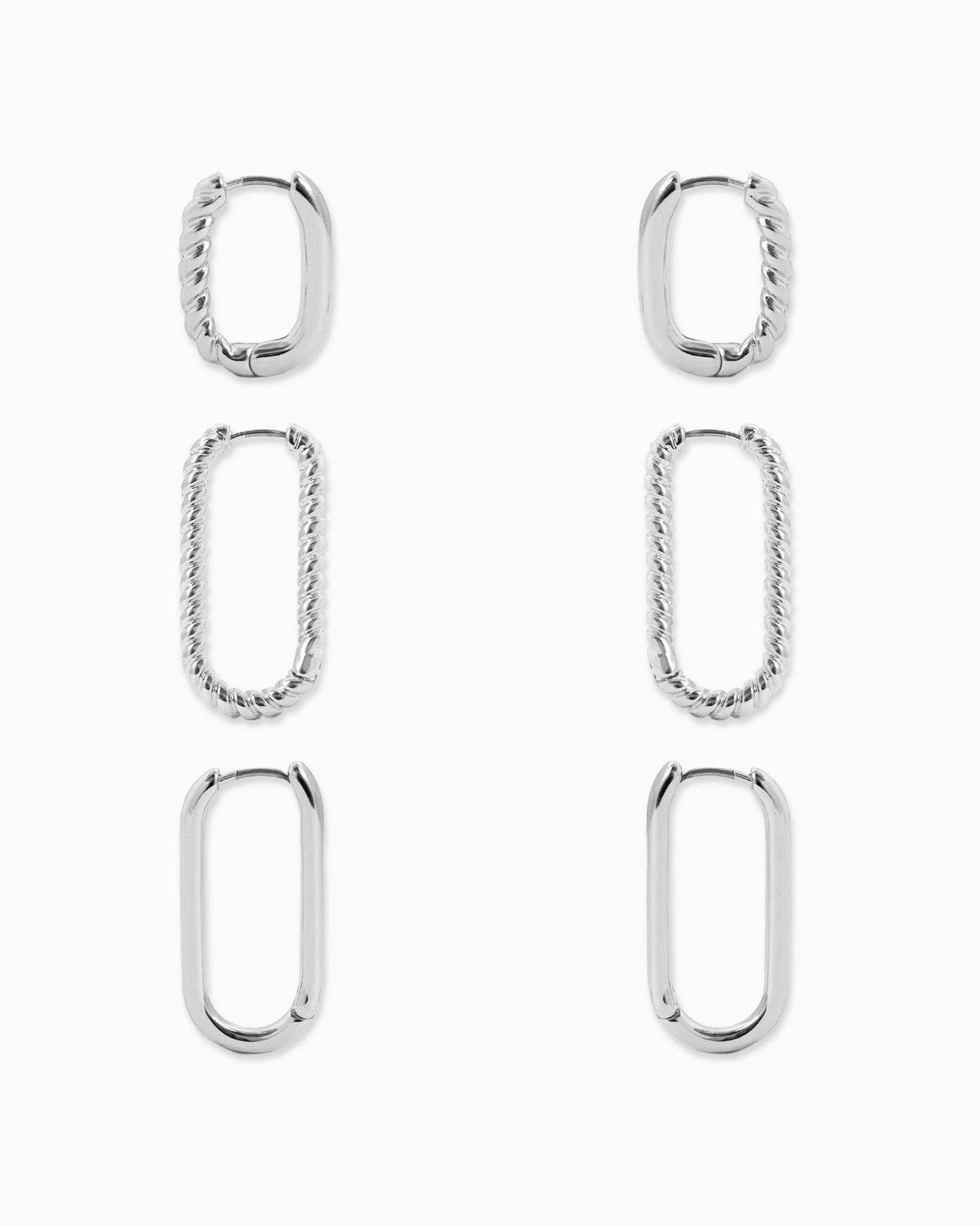 Elevate your style with this versatile oval shaped U-hoop earring set, featuring a mix of sleek, polished designs and textured details. Perfect for stacking or wearing individually, these earrings effortlessly combine modern sophistication with everyday versatility. Size: 13*19mm, 14*29mm, 14*39mm Material: Zinc