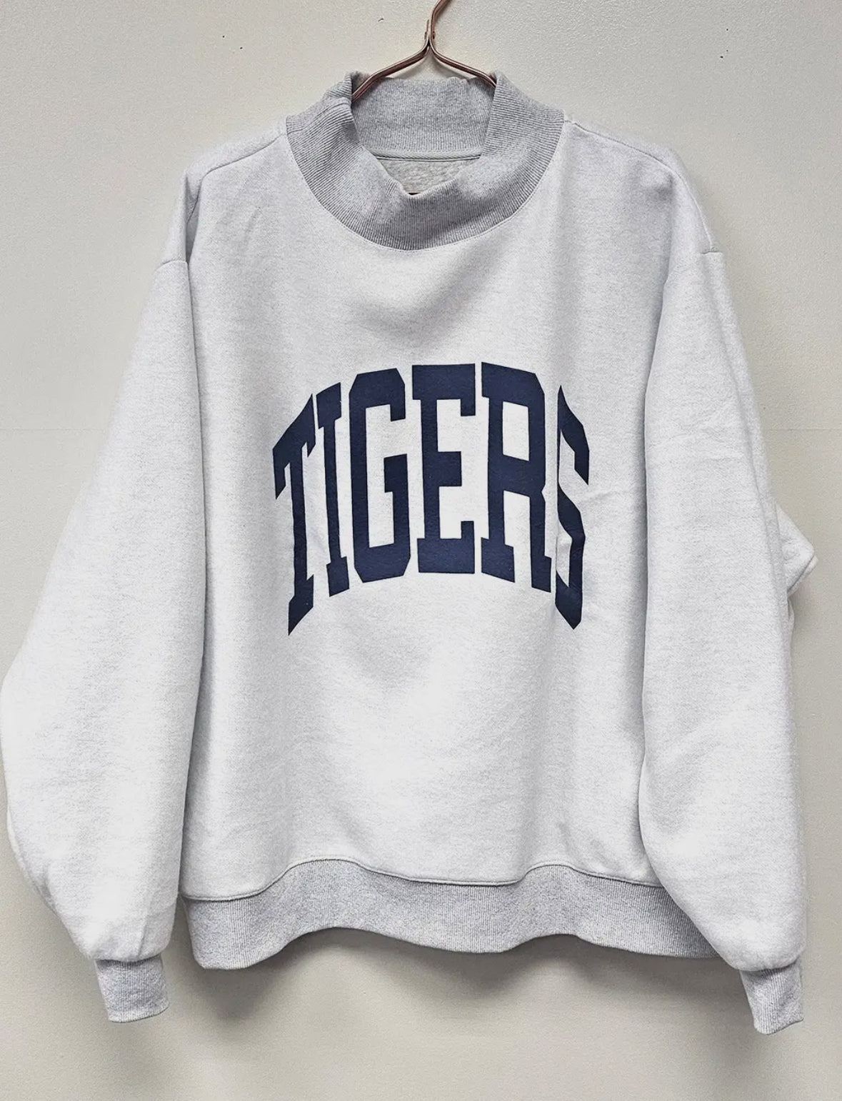 • 'War Damn' ‘Tigers’ Print Reversible Mockneck Sweatshirt